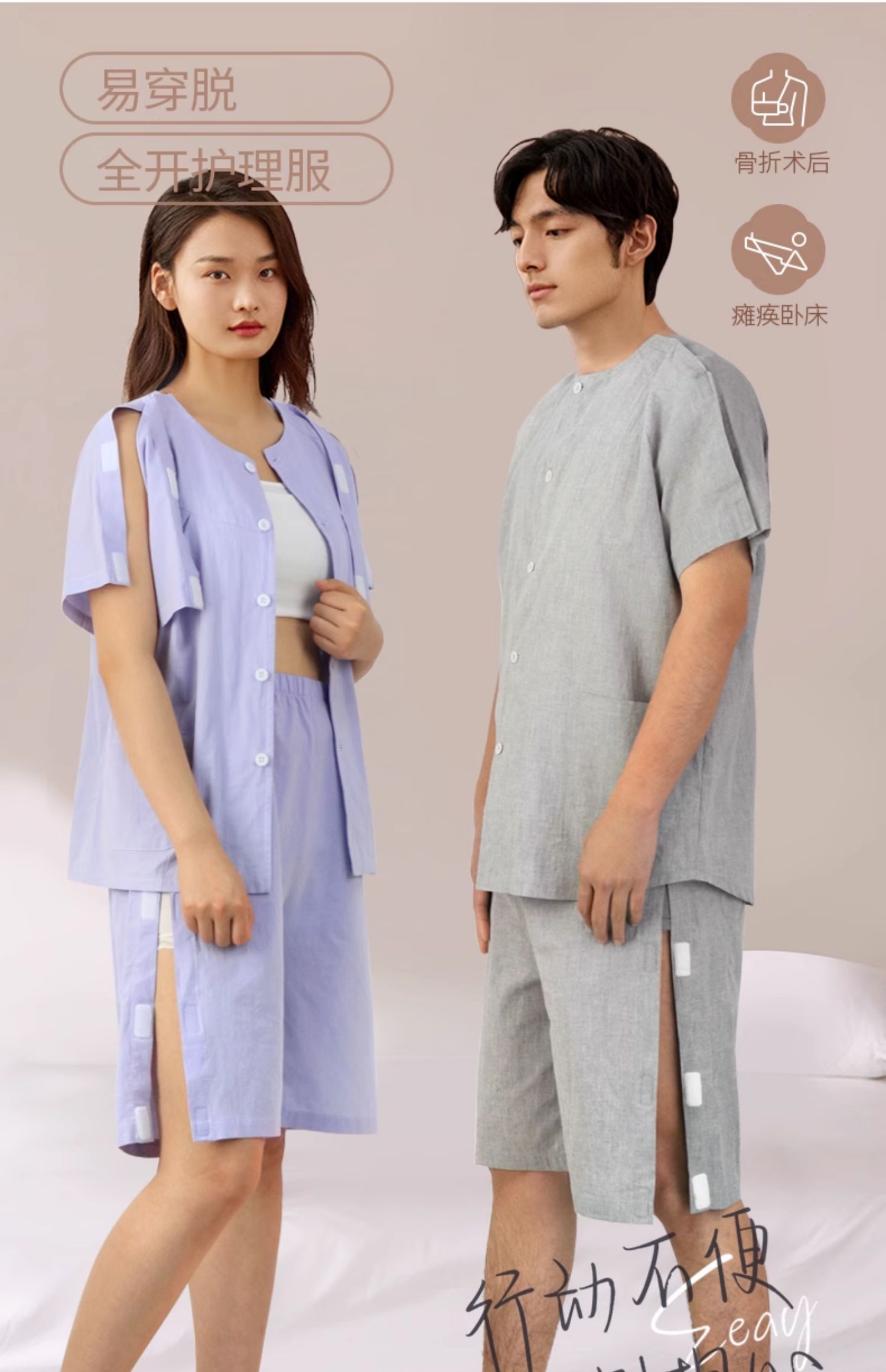 护理服短袖短裤纯棉病号服易穿脱骨折术后衣服女瘫痪病人服装夏季