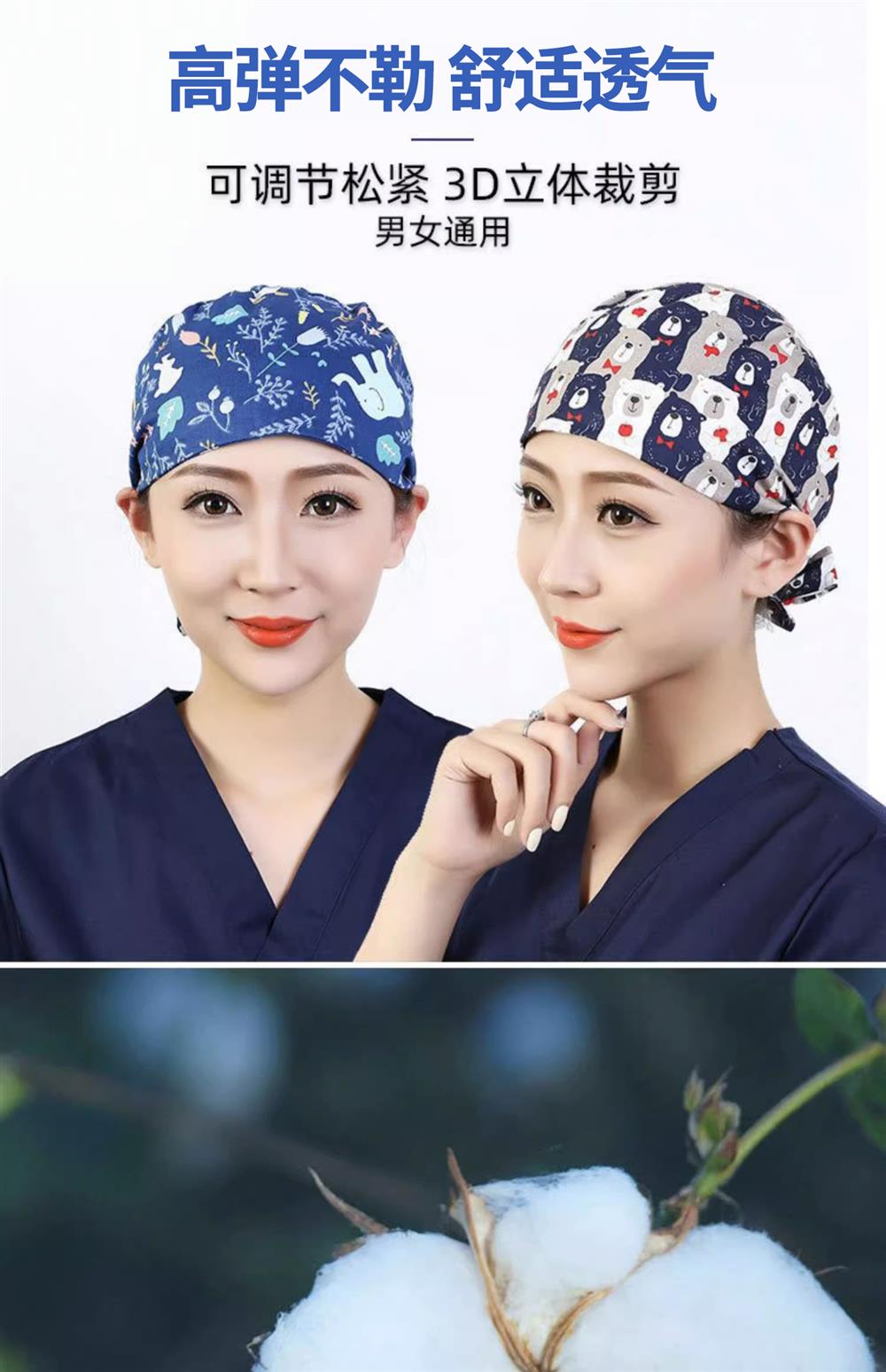 手术帽女款印花系带圆帽手术室专用医生护士工作帽口腔外科帽子男