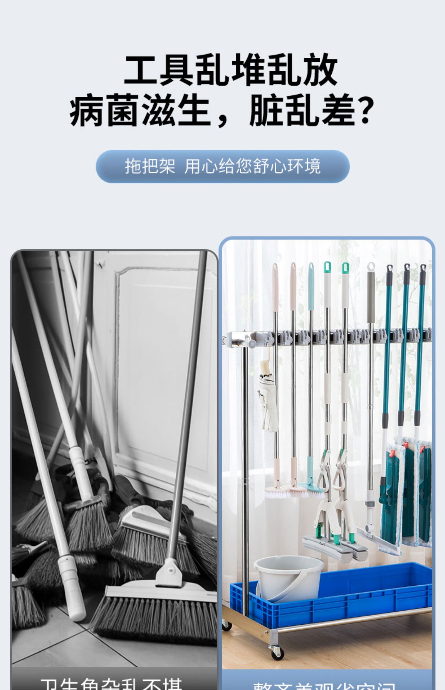 移动落地式拖把架商用不锈钢置物架墩布扫把架清洁工具收纳扫帚夹