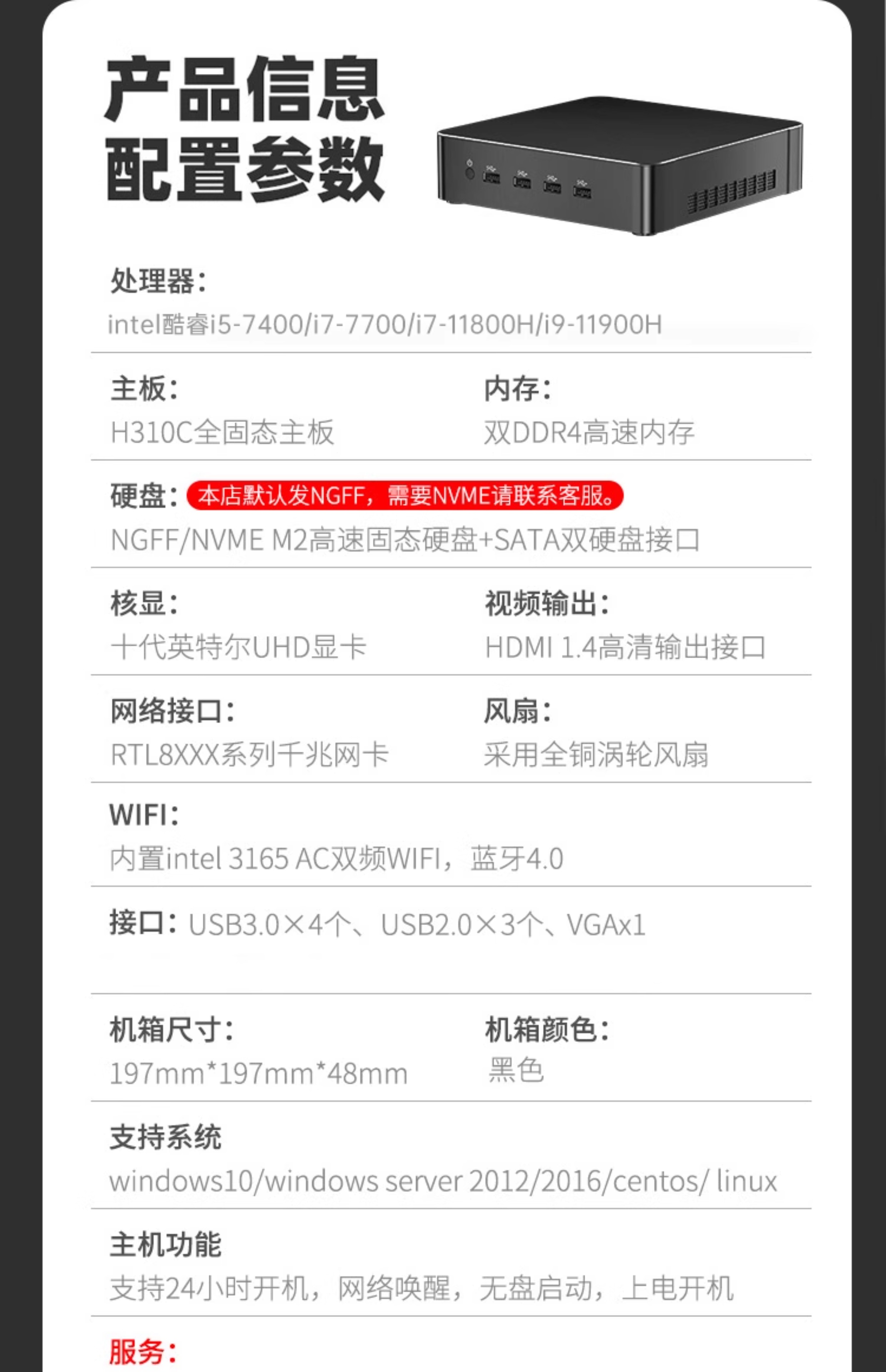 门诊用酷睿八核i9-11900H迷你电脑主机工控办公家用高配diy组装...