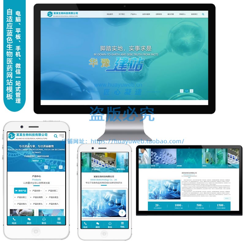 蓝色自适应医药网站模板生物技术医疗机械制药类企业集团php源码